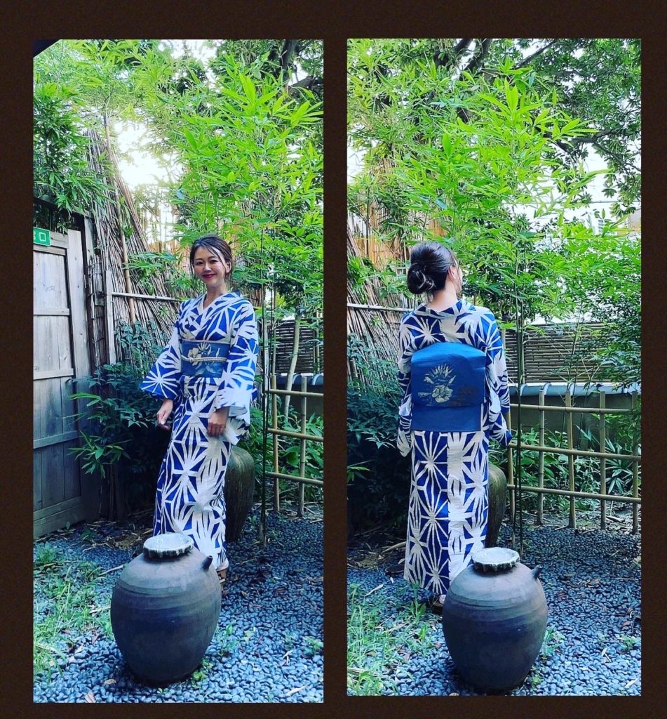 この日は花火大会があったのですが、お若い方は浴衣が多かったので少し大人カジュアルに仕上げたく浴衣を着物風に。やはり簡単にこの様に浴衣を少しカジュアルに着こなせる今がとても楽しく感じましたね。一人で浴衣すら着れなかった以前の私に「大丈夫!楽しめながらいつか着物を着てるよ!」と伝えたいですね。笑。